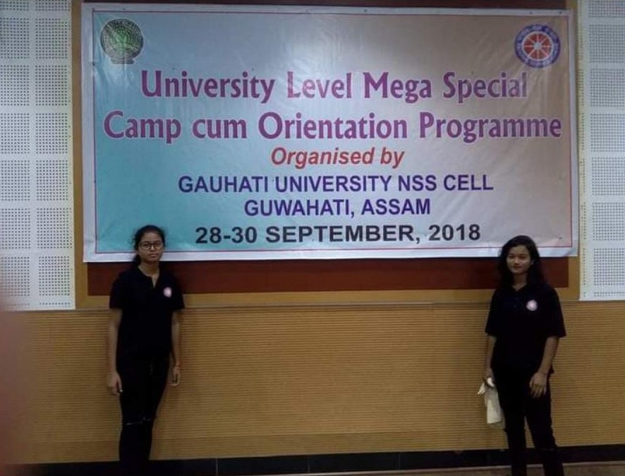 | 14 | Mega Camp cum Orientation Program | On 28-30 September 2018, University Level Mega Camp cum orientation program organized by Gauhati University NSS Cell. Our two selected volunteer’s Daisy Basumatary and Nishita Medhi has participated. | 2018-09-28 | View File |